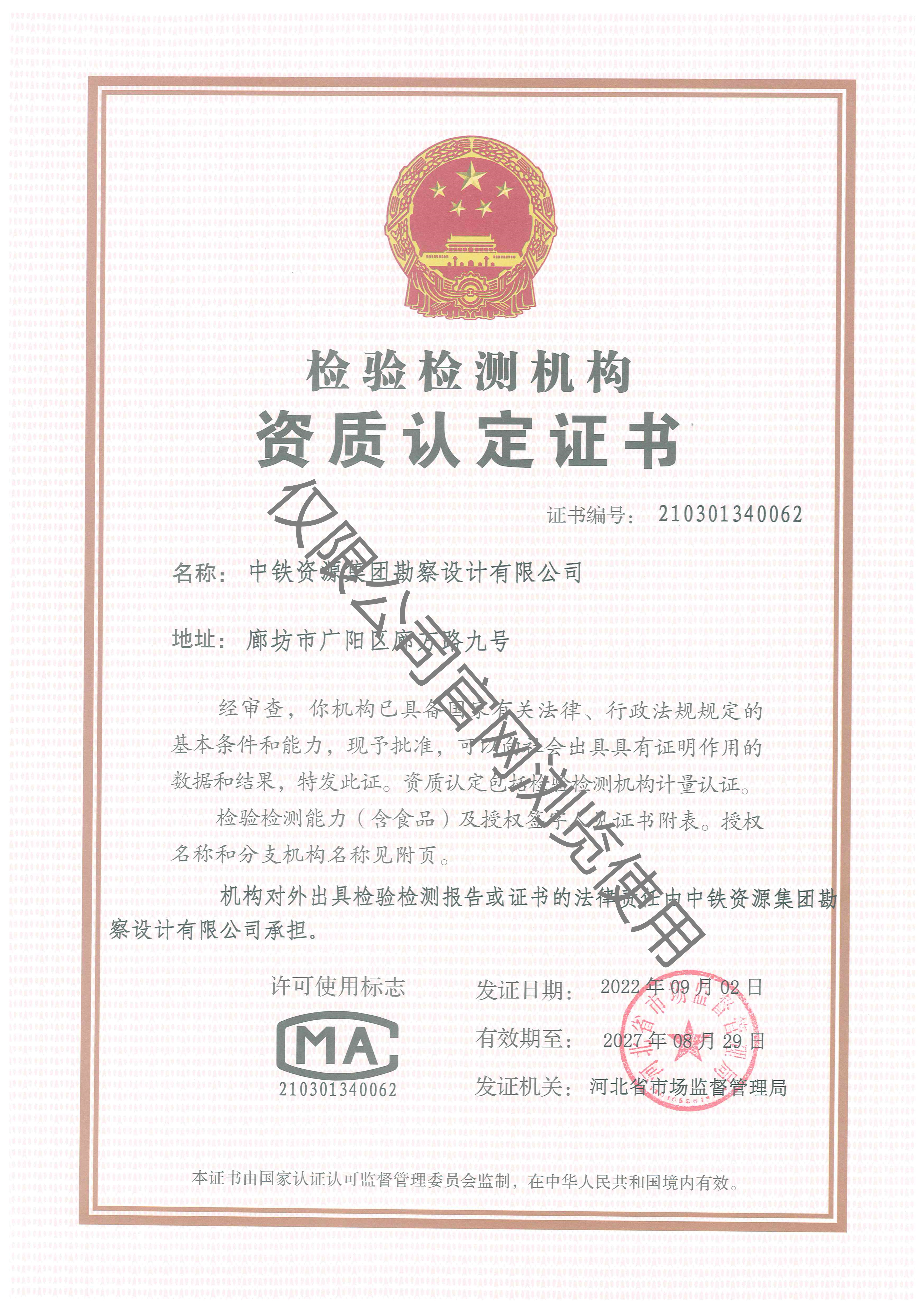 檢驗(yàn)檢測(cè)機(jī)構(gòu)資質(zhì)認(rèn)定證書(shū)